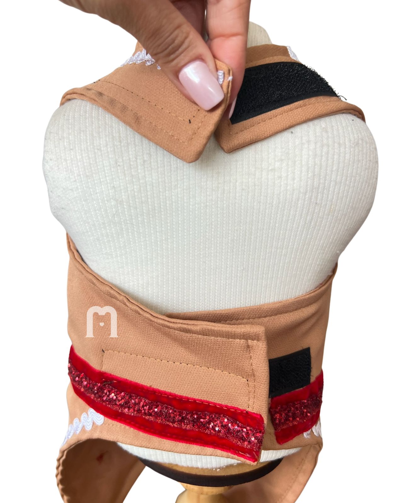 – Cinto em veludo e fita micro glitter.